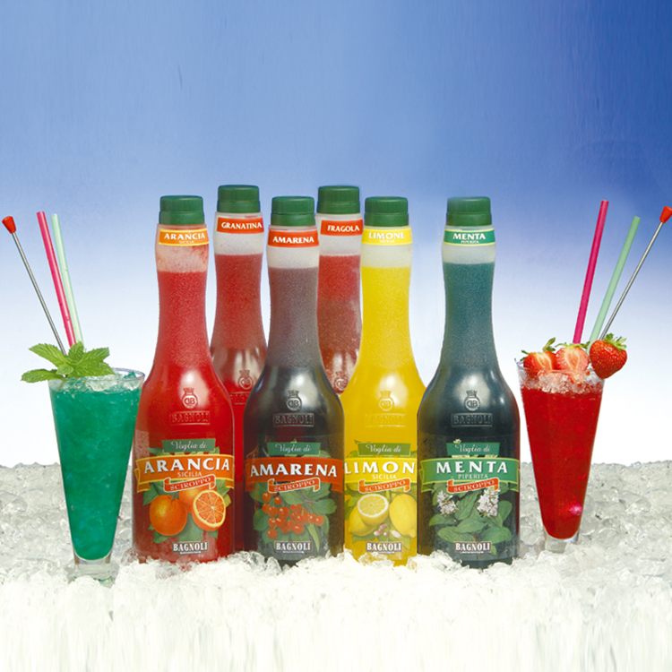 Sciroppo ad elevata resa aromatica, ricco di succo e polpa di frutta. Ideale per bibite dissetanti, granite, ghiaccioli. Ottimo anche nel gelato, frappè e nei frullati.
